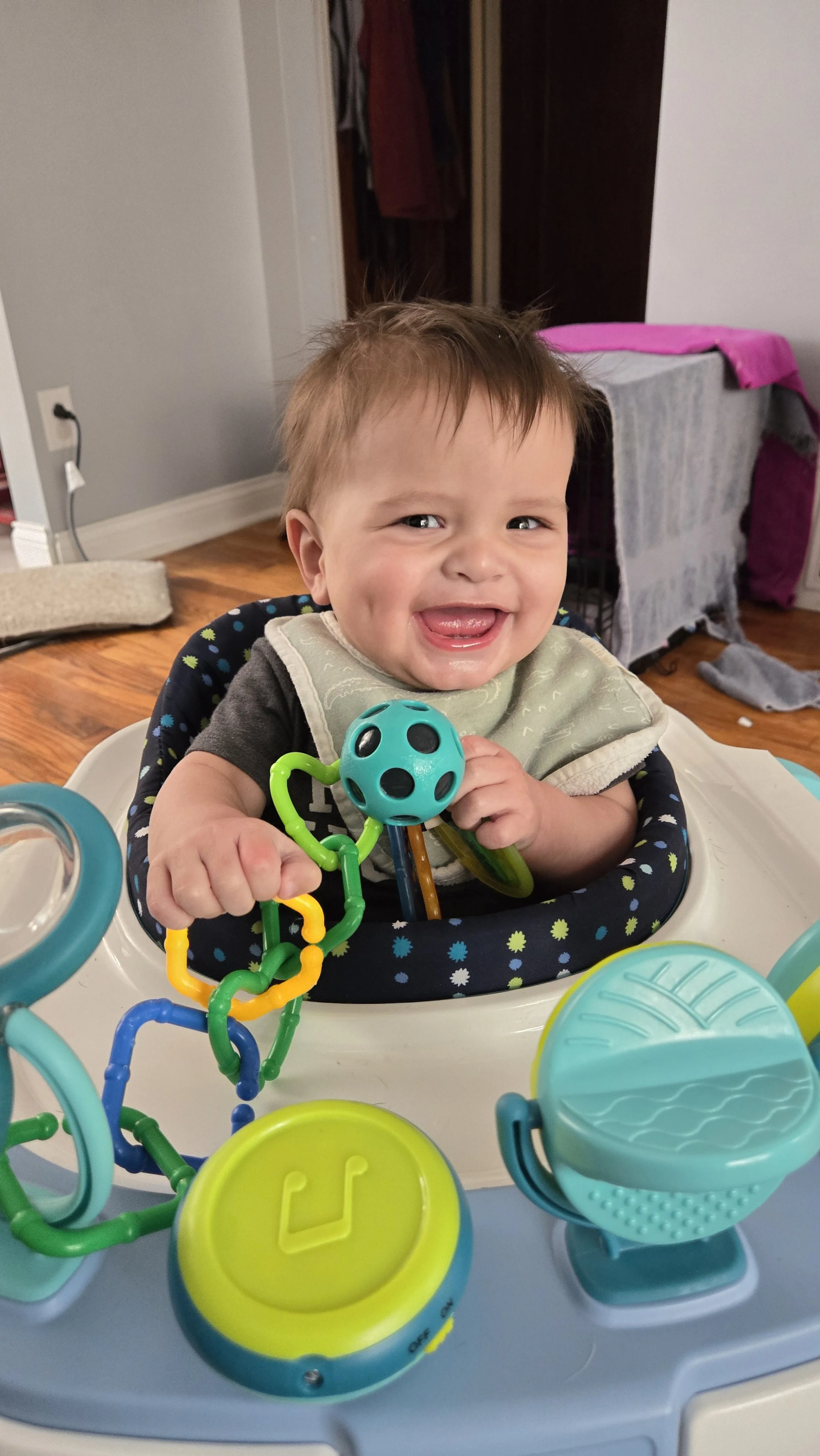 Saturday afternoon Uncle Joey stopped by to meet Oscar on a very short trip to STL. It took a minute but Oscar warmed up to Joey and Joey really got him laughing by making funny noises at him.